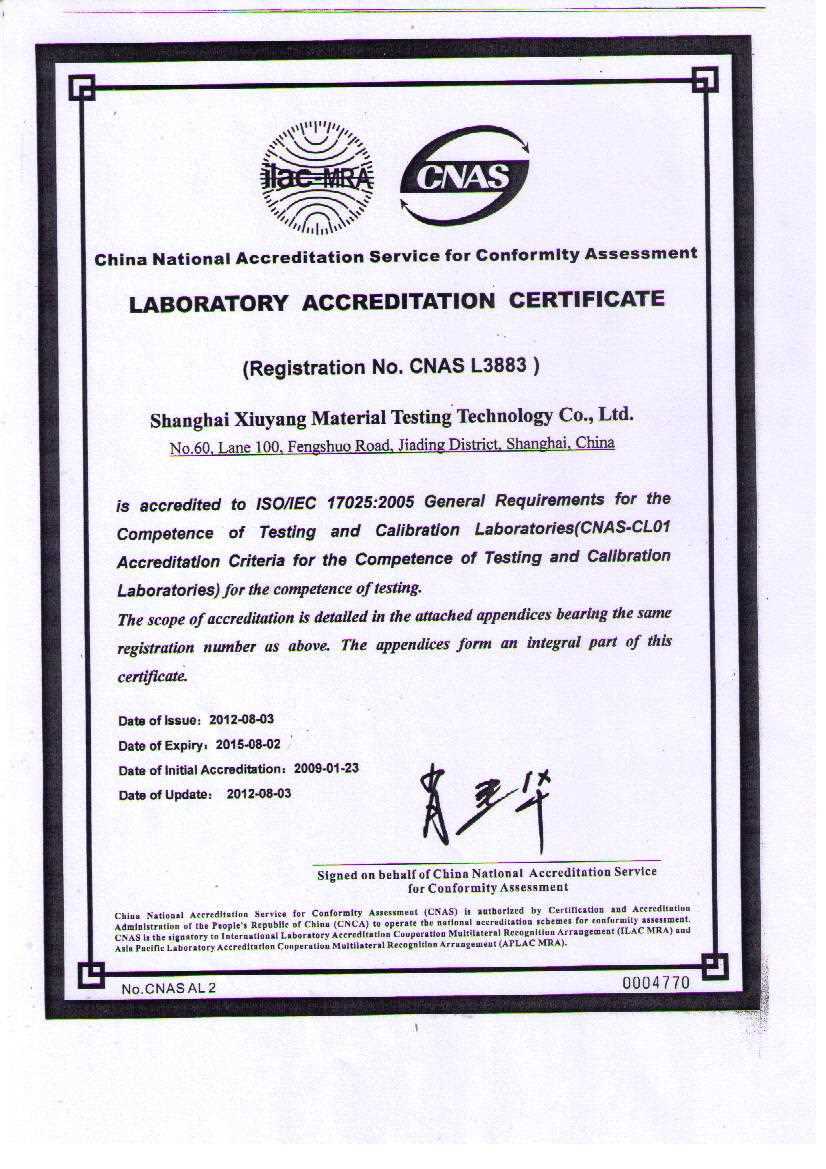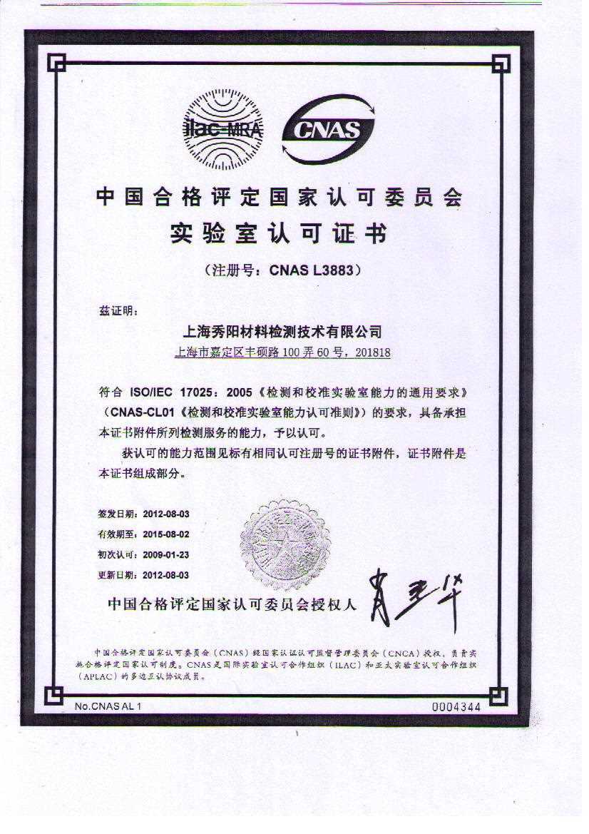 實(shí)驗(yàn)室17025體系證書(shū)